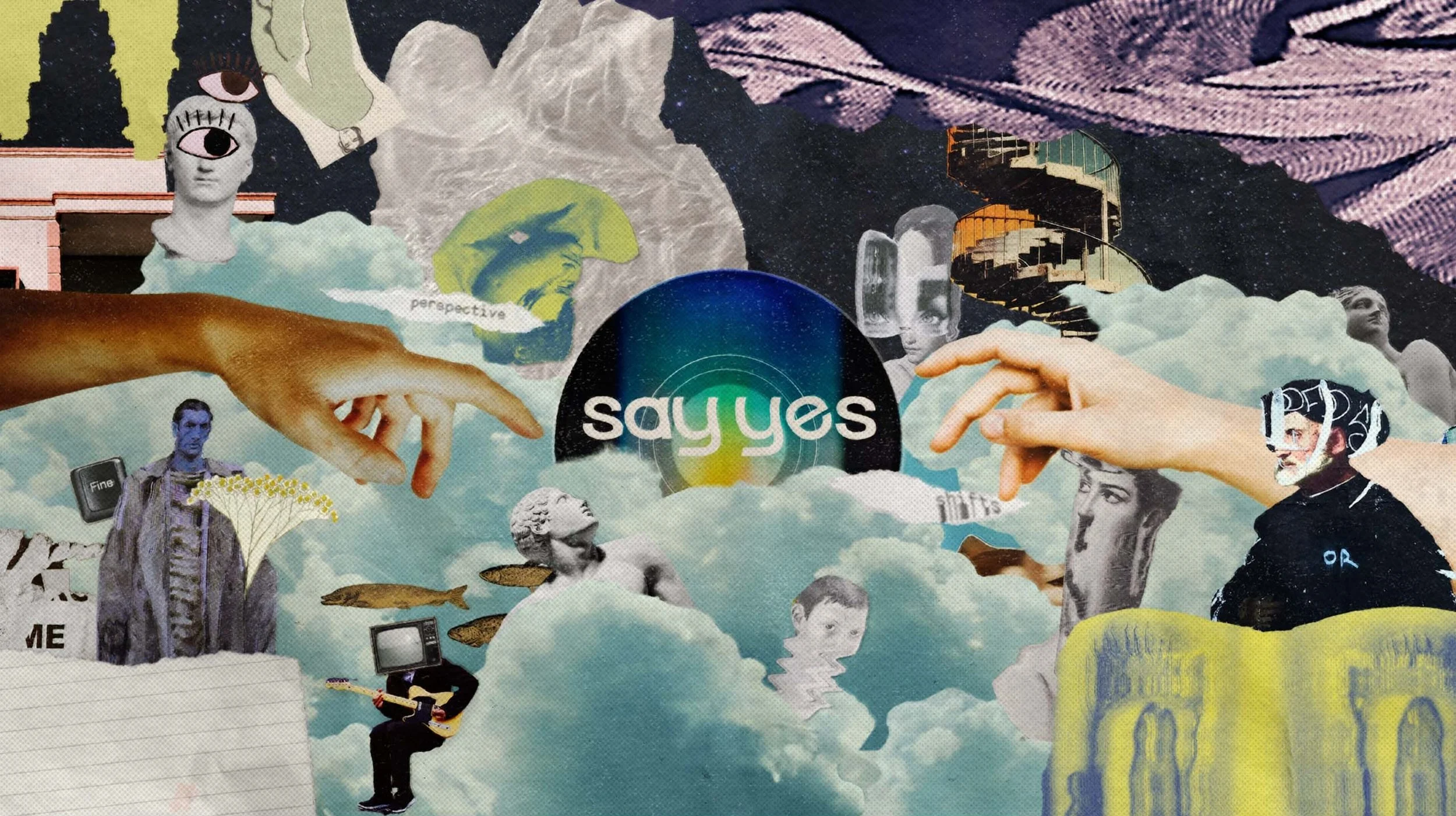 This YouTube banner is designed for Say Yes, a music management company focused on empowering new artists. Say Yes challenges conventional perspectives, offering educational resources to help artists create and produce their own music , DIY style. The banner’s DIY collage effect, combined with surreal imagery, represents their mission to blend creativity with education. The design embodies the company's bold, innovative spirit while highlighting its commitment to supporting the artistic journey.